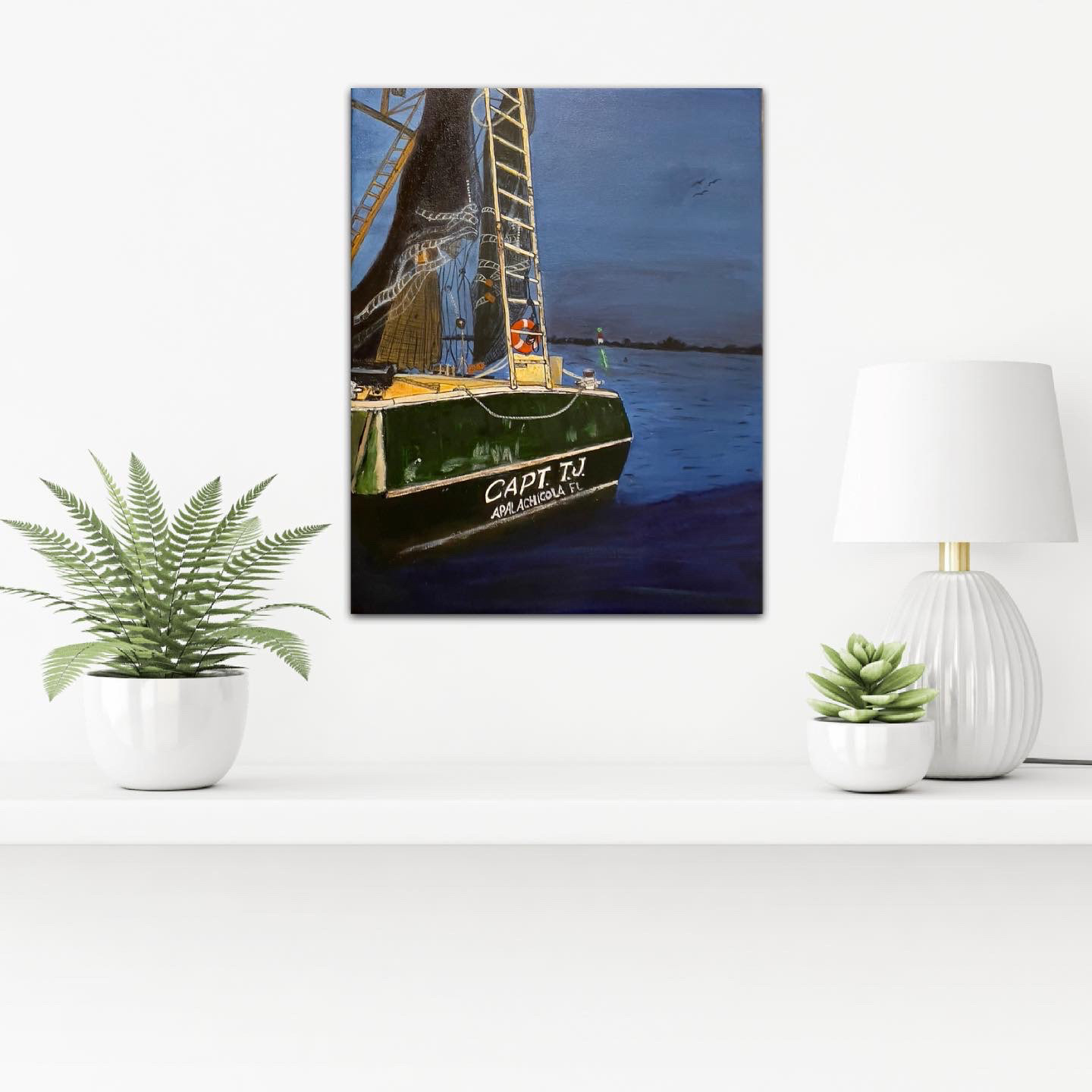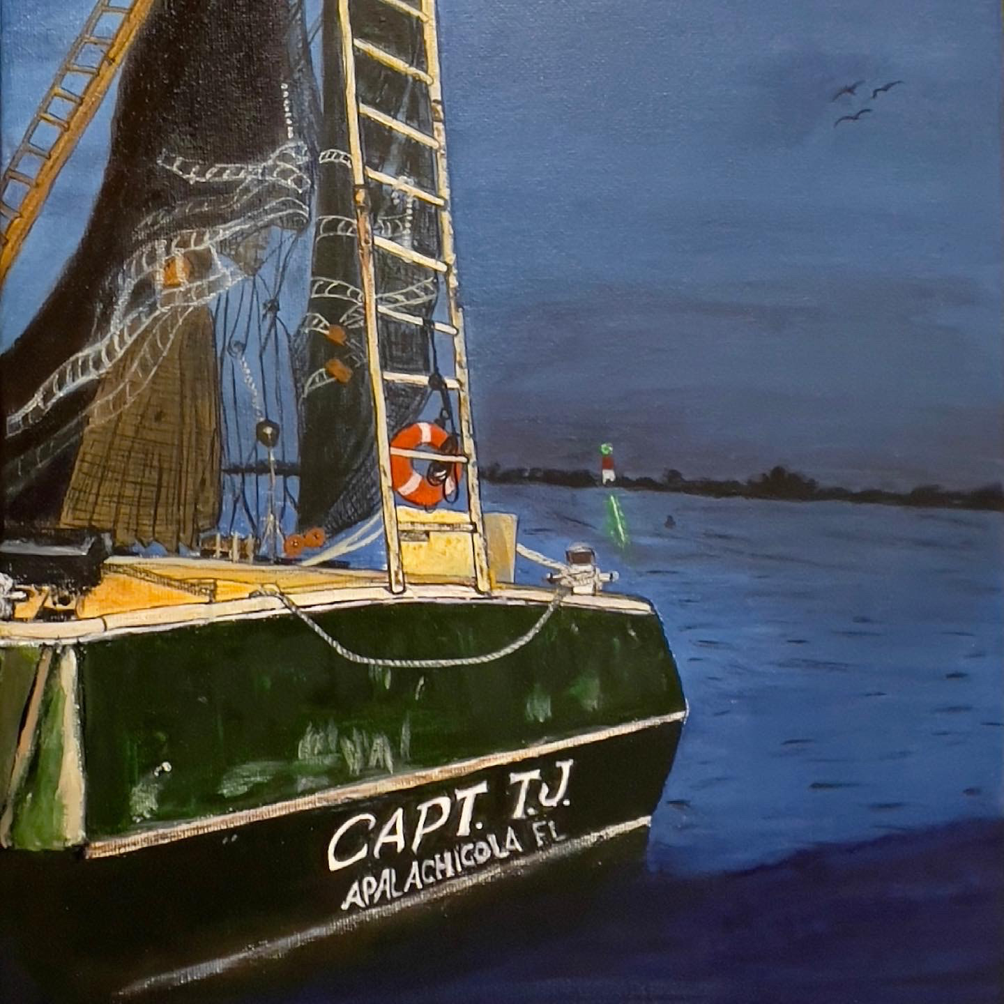 My latest commissioned piece from a repeat client. Capt. T. J. is a 11X14 Acrylic on Wrapped Canvas. When I saw his reference photograph I immediately knew right where he was standing.