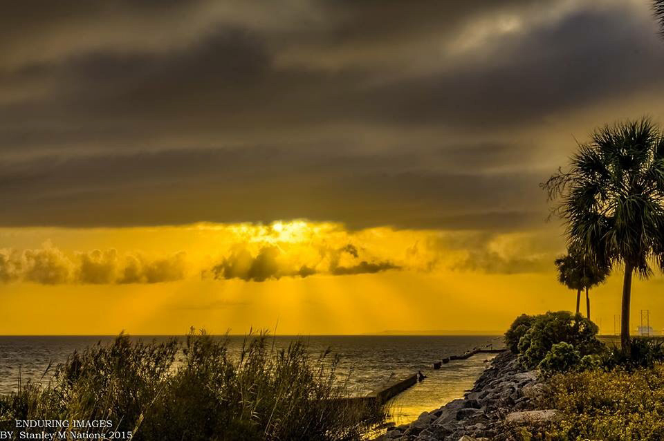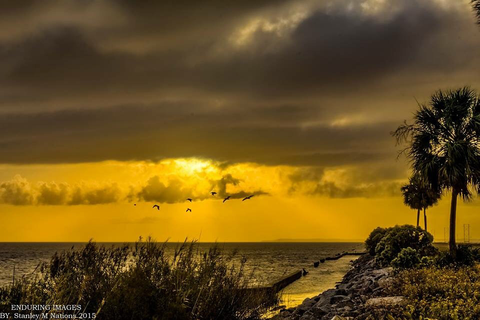 The sun disappeared behind the clouds and I knew when it popped out it would be displaying its rays of light. It did not disappoint and the Pelicans flew in just for fun.