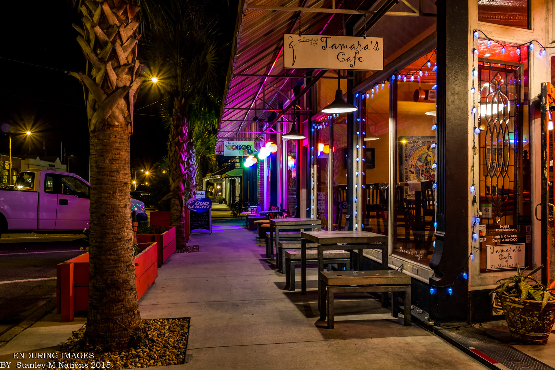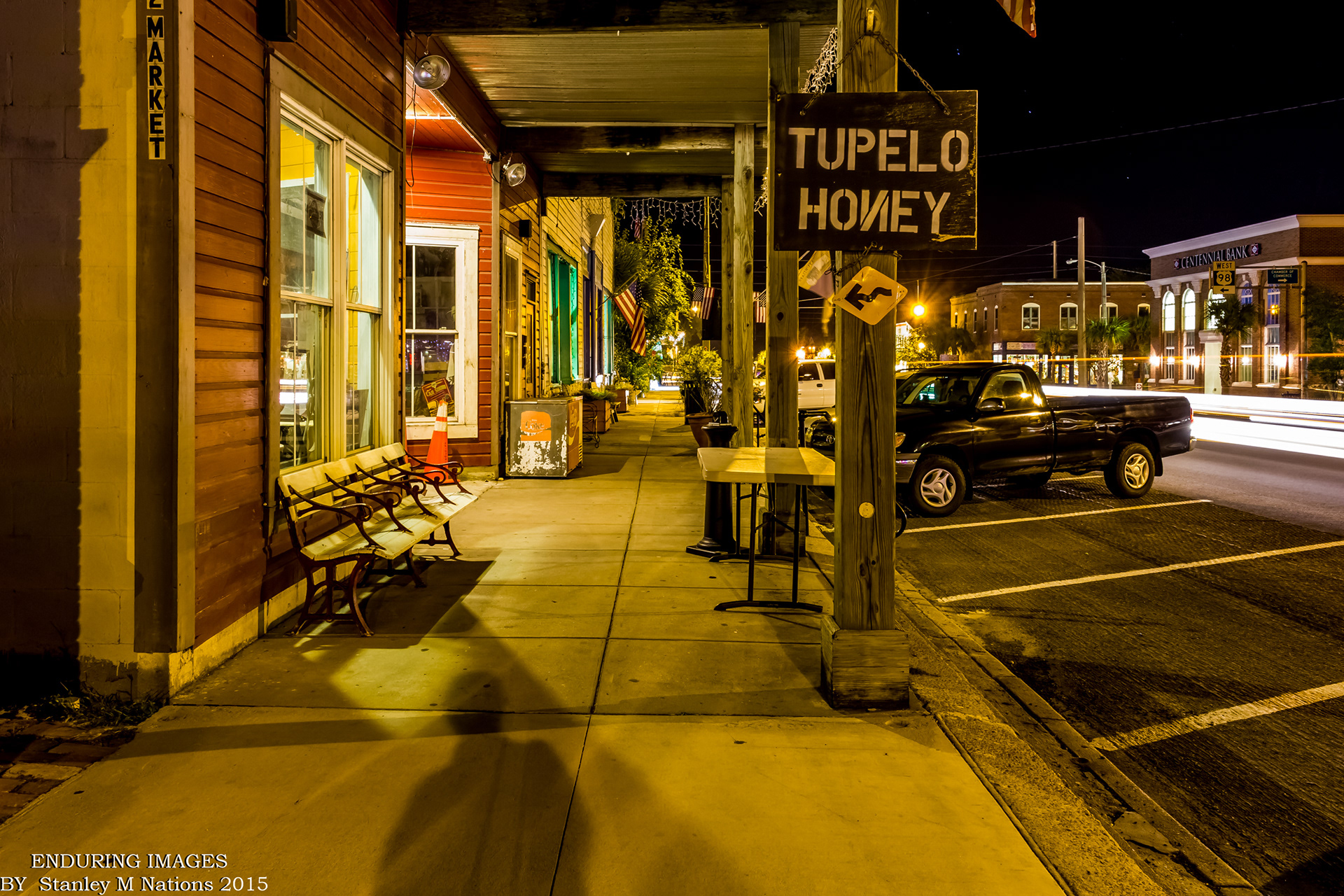 Working the night shift in Downtown Apalachicola, Florida.